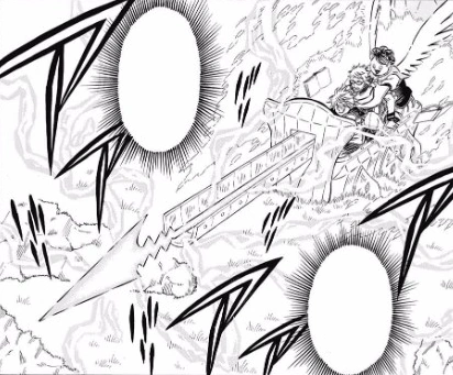 El usuario de Magia de Acero crea una balista, que el usuario de Magia de Rayo ajusta con una flecha grande que tiene una punta en forma de rayo. El usuario de Magia de Alas apoya a los otros dos desde atrás. La orientación también es ajustable, gracias a la capacidad del usuario de Magia de Rayo de detectar el maná.