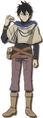 Yuno es un chico joven de estatura media con complexión delgada, ojos color ámbar y cabello negro desordenado. Su conjunto principal consiste en una camisa negra con cuello alto y manga larga. Las mangas tienen cuero marrón que cubre las muñecas y la parte superior de los brazos. Viste pantalones marrones claros que se cortan debajo de las rodillas y, alrededor de su cintura, un par de cinturones marrones que se cruzan. Además, usa un par de calcetines de color oscuro y un par de botas. Lleva su grimorio en una bolsa atada a la derecha de su cintura.