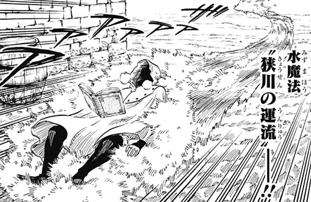 Magie Aqueuse: Transport Torrentiel (水魔法『挟川の運流』, Mizu Mahō "Kyōsen no Unryū") est un sort de la Magie de l'Eau.