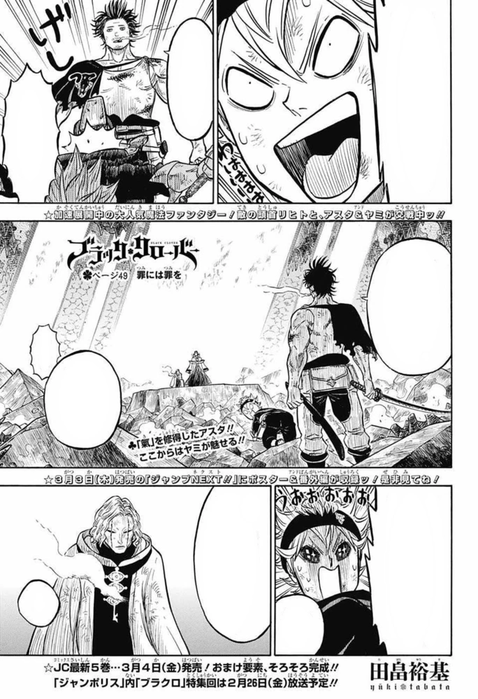 Dosa Untuk Dosa 「罪には罪を Tsumi ni wa Tsumi o」 adalah halaman ke-49 dari sang penulis Yūki Tabata dalam Black Clover.