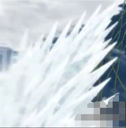 Dengan grimoire terbuka, pengguna membuat bongkahan besar es berduri. Setelah dilepaskan, es meluas menuju target.[1]