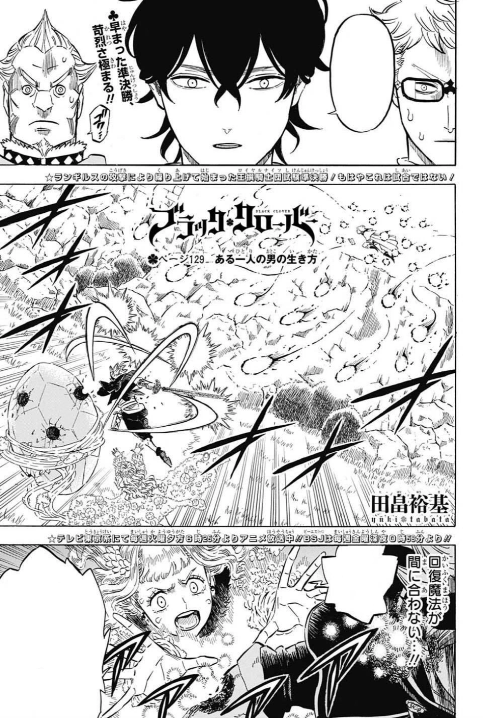 O Jeito de Viver De Um Filho Único 「ある一人の男の生き方 Aru Hitori no Otoko no Ikikata」 é a 129ª página de Black Clover de Yūki Tabata.