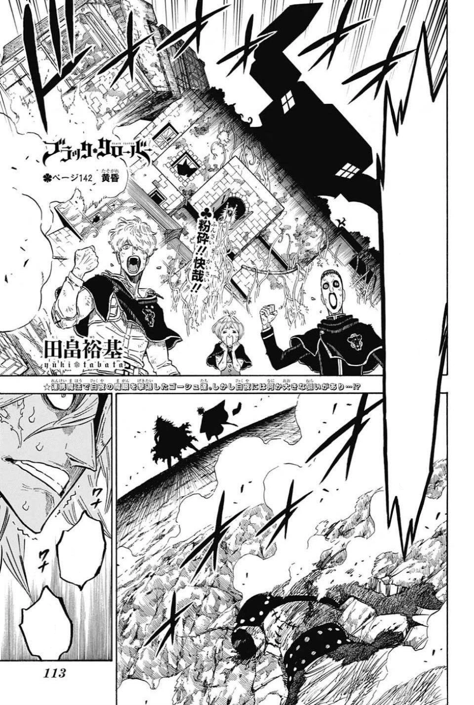 Crepúsculo 「黄昏 Tasogare」 é a 142ª página de Black Clover de Yūki Tabata.