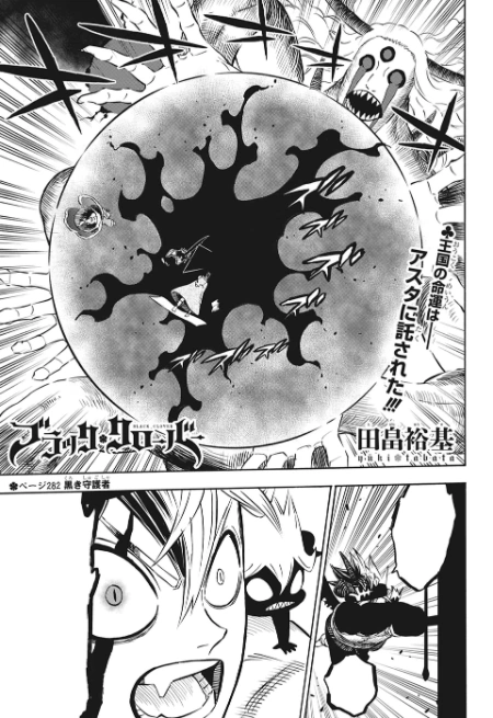 Guardião Negro 「黒き守護者 Kuroki Shugosha」 é a 282ª Página de Black Clover de Yūki Tabata.