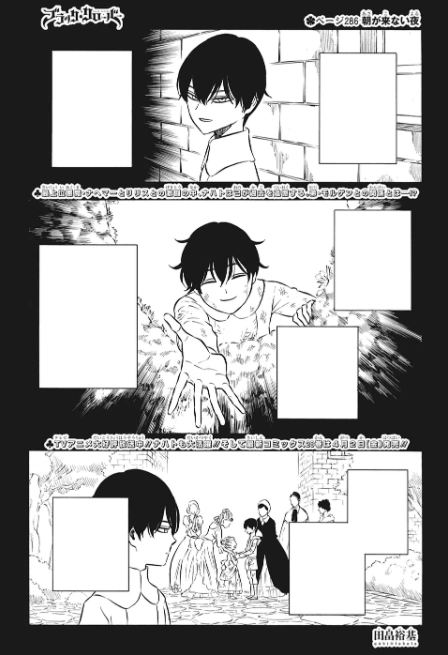 Uma Noite Sem Manhã 「朝が来ない夜 Asa ga Konai Yoru」 é a 286ª Página de Black Clover de Yūki Tabata.