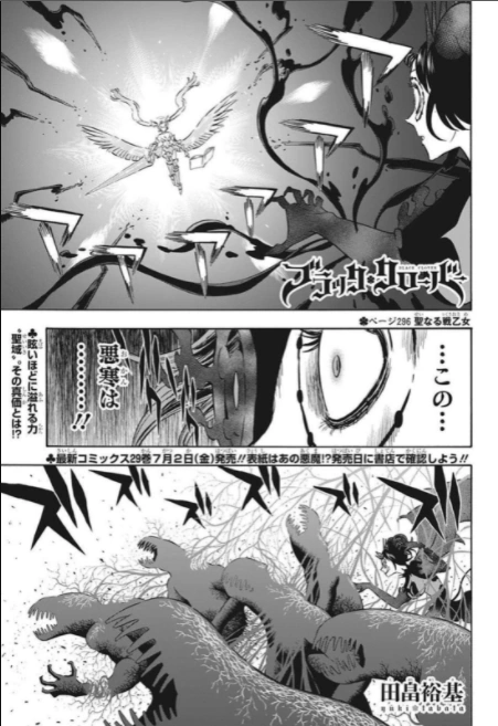 A Valquíria Sagrada 「聖なる戦乙女 Seinaru Ikusaotome」 é a 296ª Página de Black Clover de Yūki Tabata.