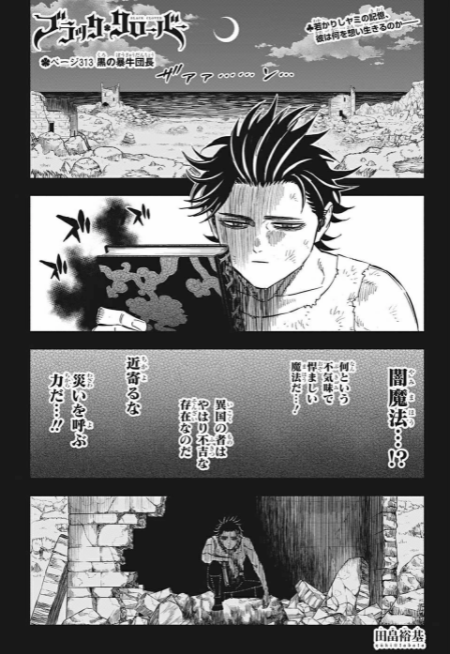 O Capitão dos Touros Negros 「黒の暴牛団長 Kuro no Bōgyū Danchō」 é a 313ª Página de Black Clover de Yūki Tabata.