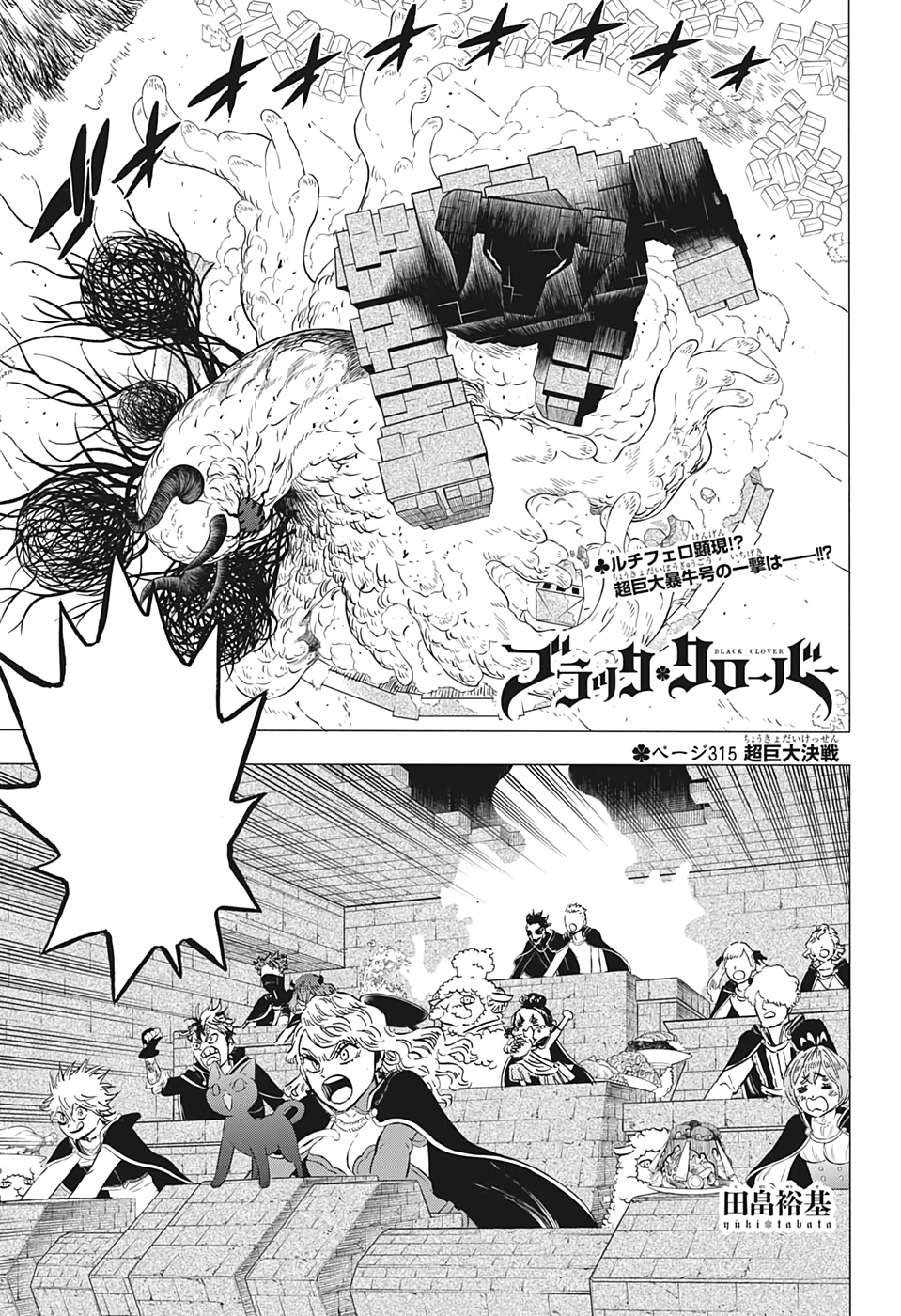 Confronto Ultra Gigante 「超巨大決戦 Chōkyodai Kessen」 é a 315ª Página de Black Clover de Yūki Tabata.