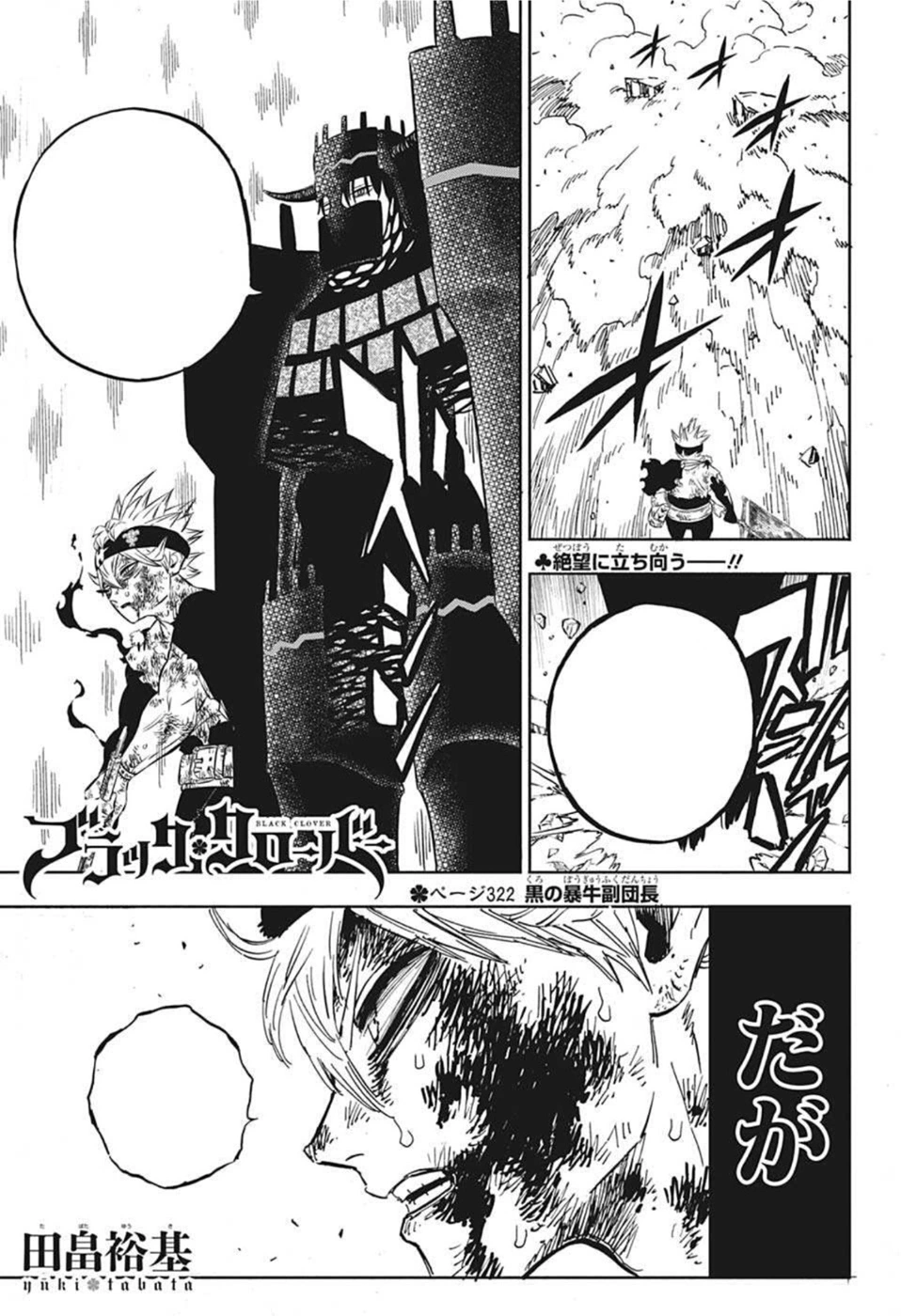 O Vice-Capitão dos Touros Negros 「黒の暴牛副団長 Kuro no Bōgyū Fuku-danchō」 é a 322ª Página de Black Clover de Yūki Tabata.