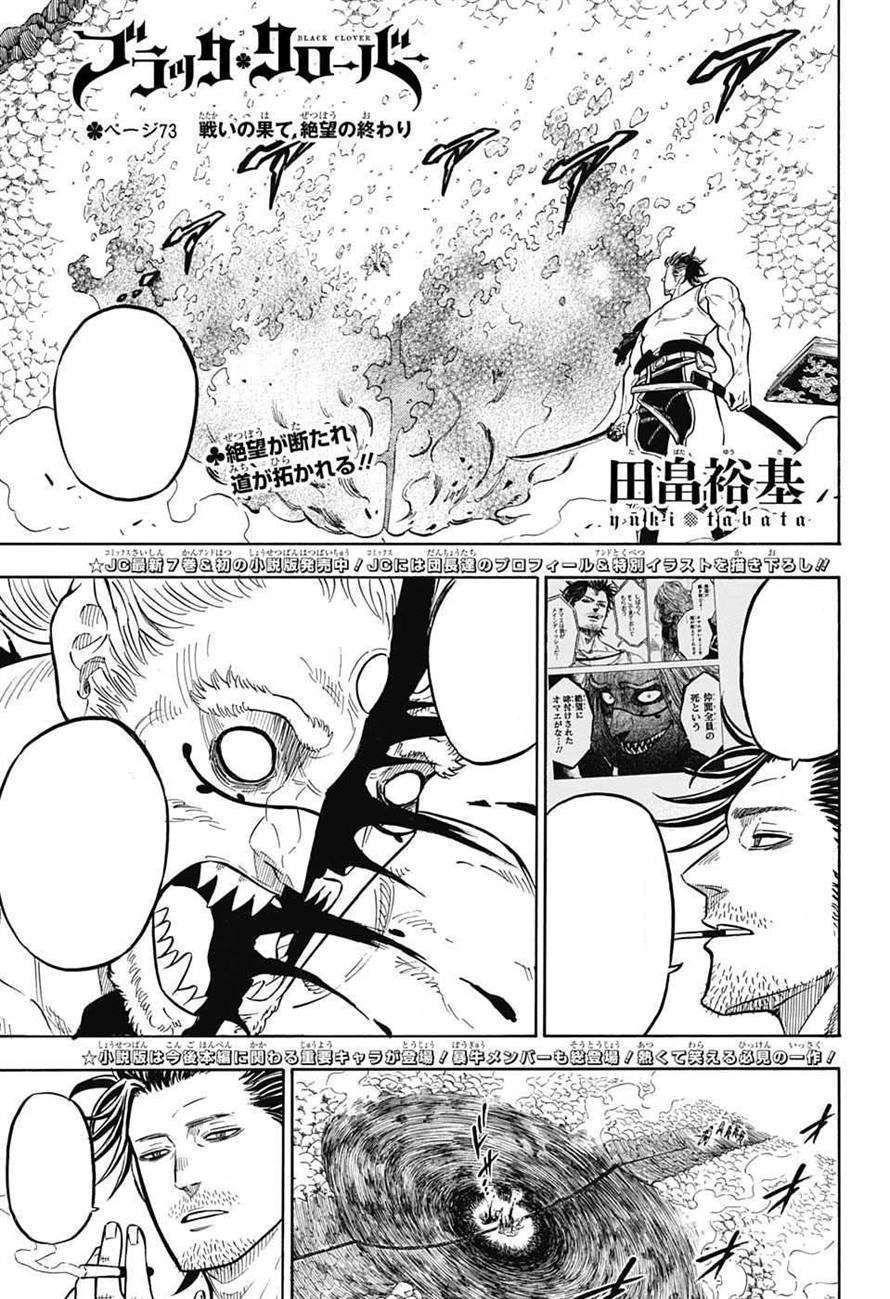 No Fim da Luta, o Fim do Desespero 「戦いの果て、絶望の終わり Tatakai no Hate, Zetsubō no Owari」 é a 73ª página de Black Clover de Yūki Tabata.