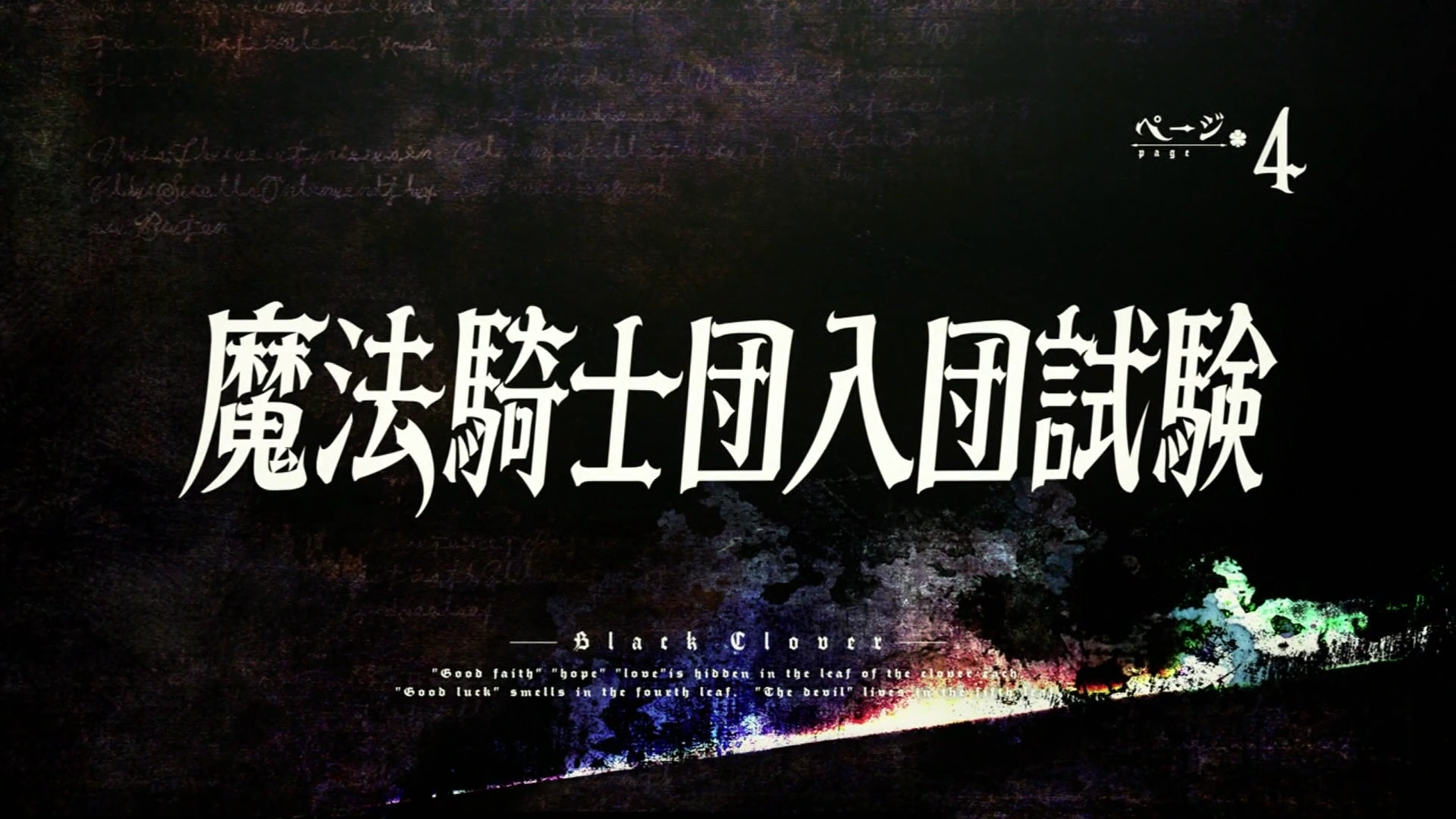 O Exame de Admissão Para Os Cavaleiros Mágicos 「魔法騎士団入団試験 Mahō Kishi-dan Nyūdan Shiken」é a 4ª página de Black Clover de Yūki Tabata.