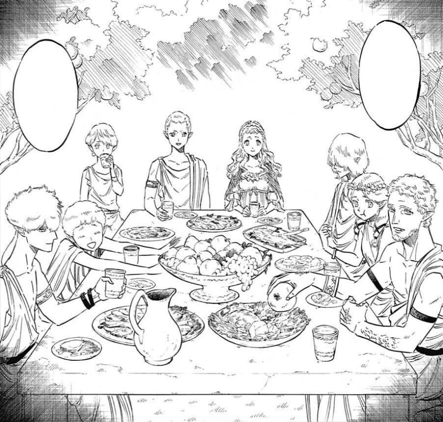 Os elfos desfrutam de uma refeição antes do casamento de Licht.