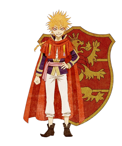 Leopold Vermillion 「レオポルド・ヴァーミリオン Reoporudo Vāmirion」 é um nobre e o segundo filho da Casa Vermillion do Reino Clover, uma de suas famílias reais.[4] Ele é um Cavaleiro Mágico Intermediário de 2ª Classe do esquadrão Reis Leões Carmesins.[5]