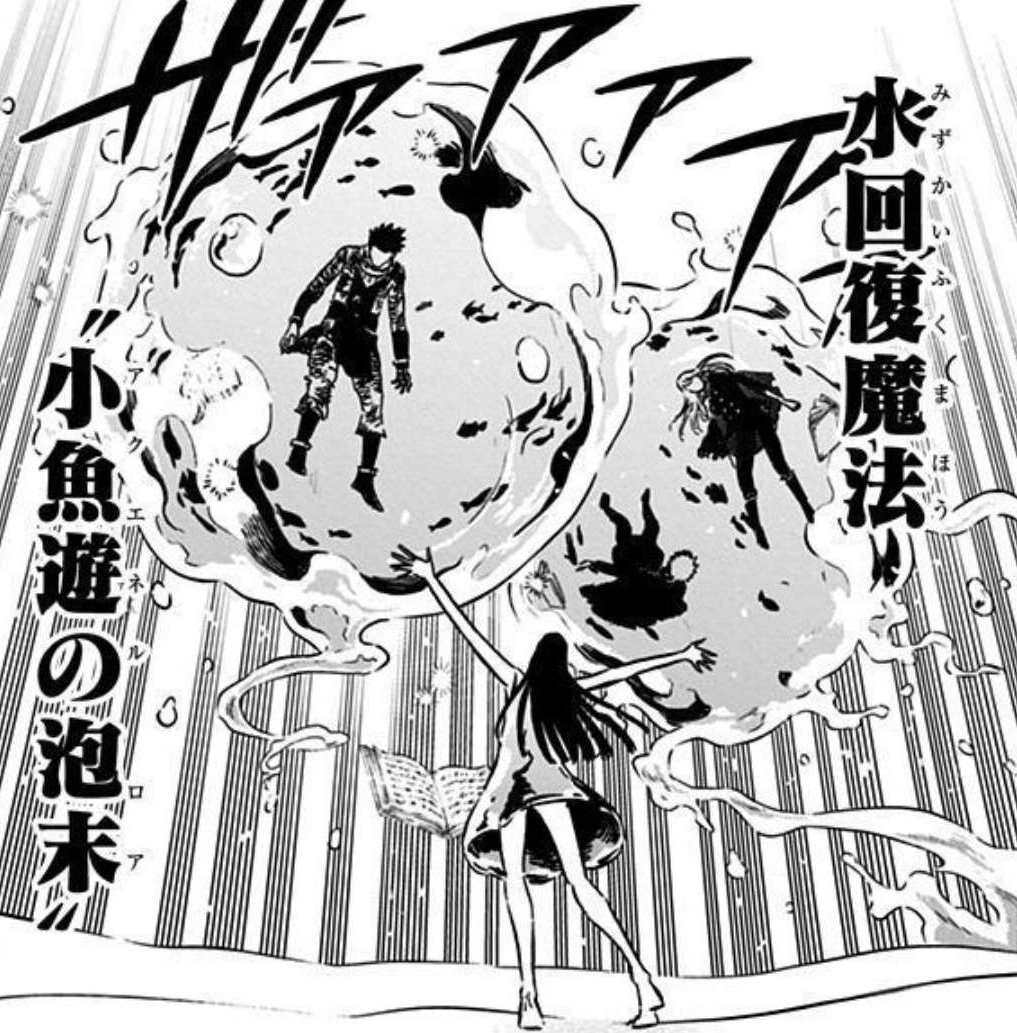 При открытом гримуаре, пользователь создает большой пузырь из воды, который окутывает цель. Маленькие рыбки плавают в пузыре, пока лечат раны цели.