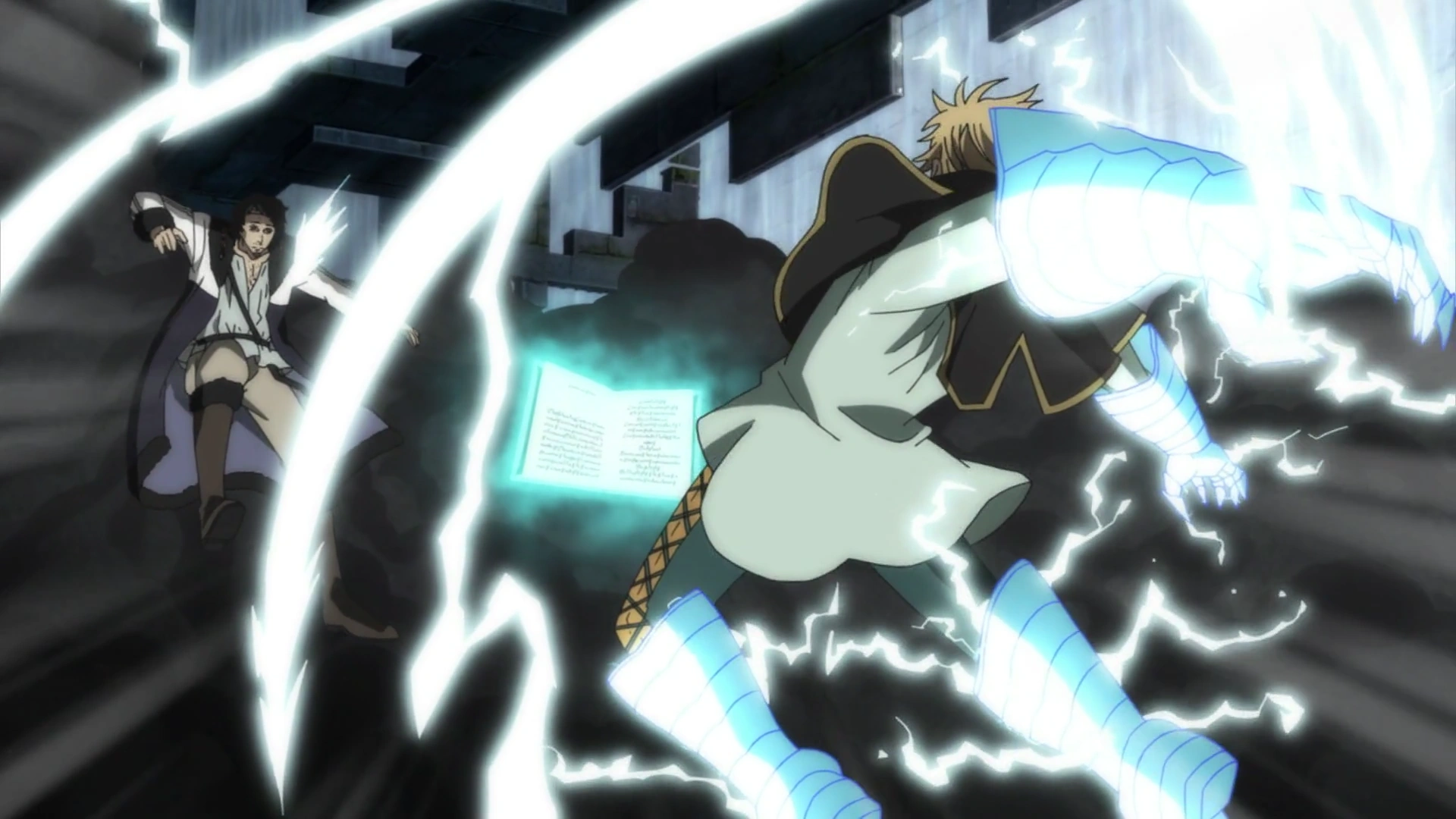 - Гримуар: Лотос владеет гримуаром с алмазом, который содержит различные заклинания, основанные на дыме. Его гримуар имеет светлую обложку, каждая из которых украшена замысловатым орнаментом.[40]