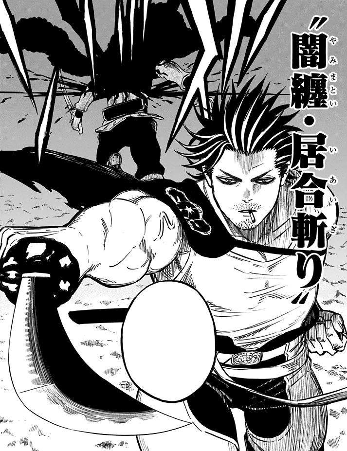 Конденсация Зоны Маны: Окутанный Тьмой Удар Иай 「マナゾーン凝縮『闇纏・居合斬り』 Manazōn Gyōshuku "Yamimatoi: Iaigiri"」- это заклинание Магии Тьмы.
