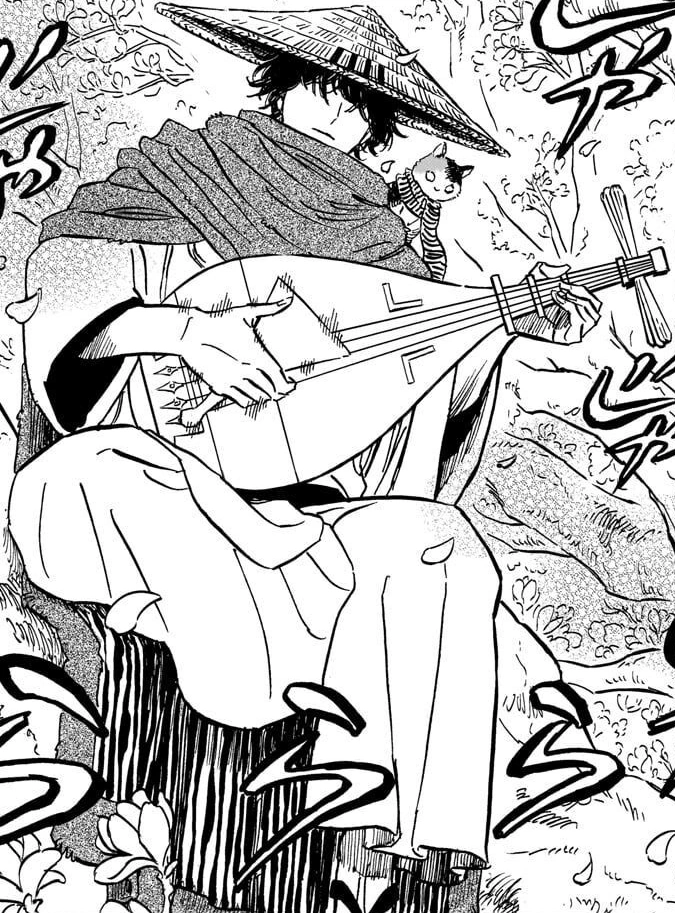 - У кошки Фудзио два хвоста.[10] Это отсылка к некомате - кошке-ёкаю в японском фольклоре.