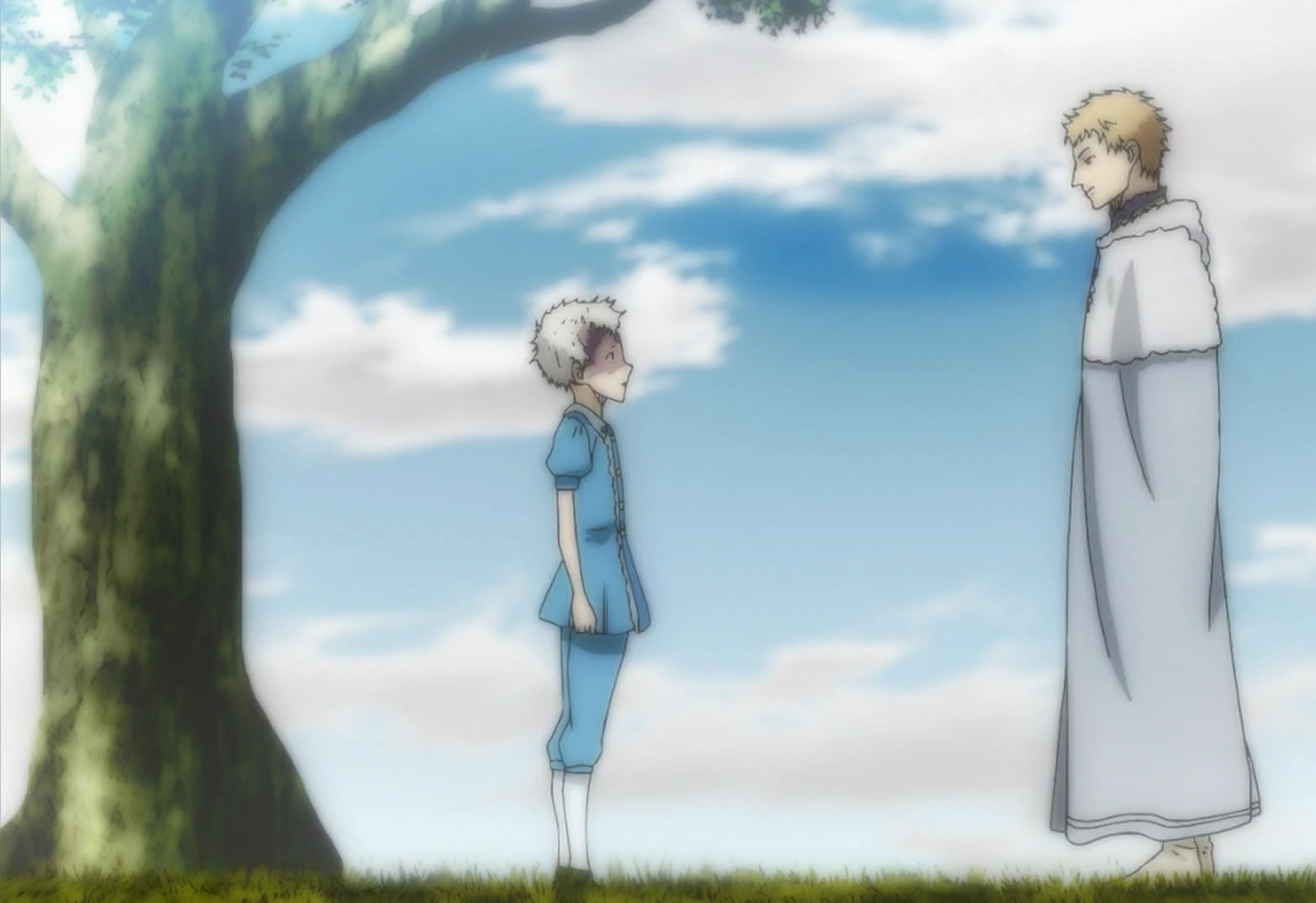 На следующее утро, Юлиус вернулся к жизни благодаря дополнительному времени, которое он сохранил в своей метке, и его тело вернулось к подростковому возрасту. Юлиус благодарит Ями и Уильяма, когда они приходят его искать.[82] Ями хватает Юлиуса за воротник и говорит что он не мог выжить. Уильям пытается извиниться, но Юлиус обрывает его, заявляя, что предательство королевства является серьезным преступлением и что он намерен заставить Уильяма работать над восстановлением королевства. Когда Ями спрашивает, не слишком ли снисходителен Юлиус, Юлиус признает, что часть ответственности лежит на нем самом. Затем Уильям возвращает свой гримуар Юлиусу и королевству.[83]