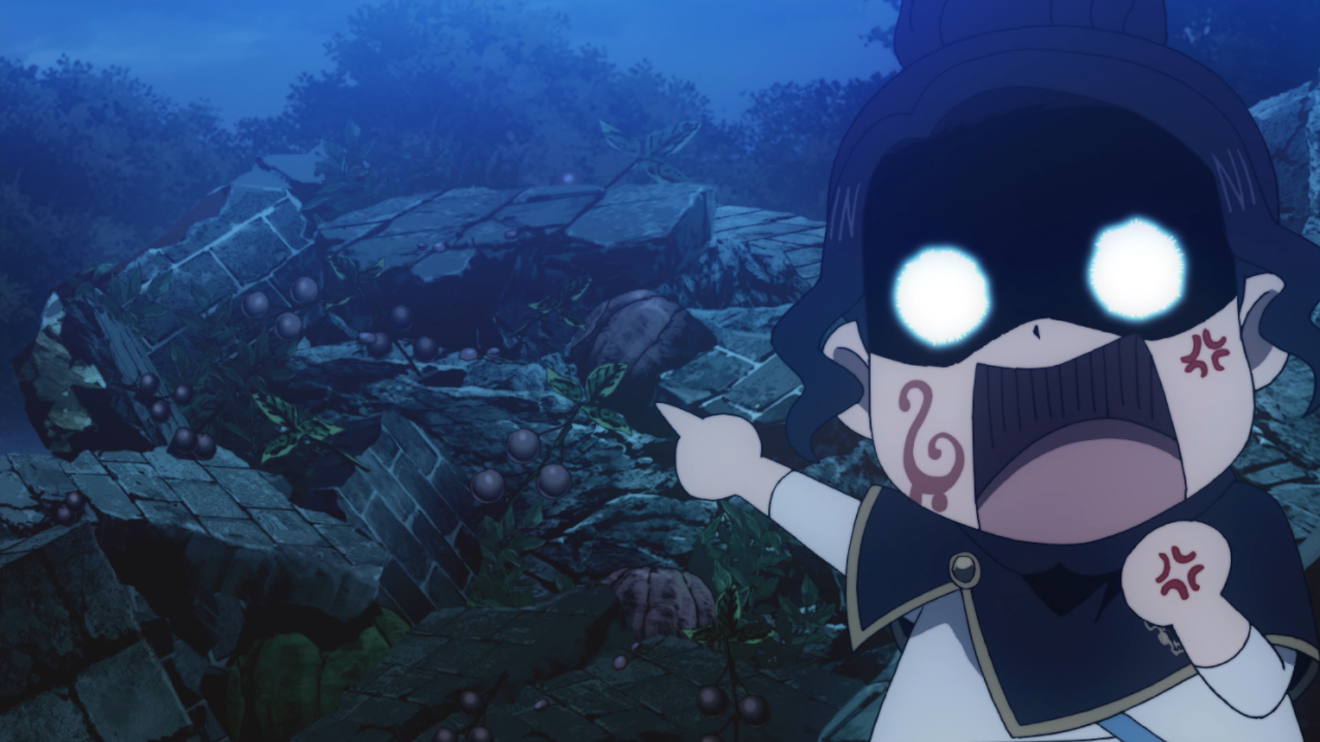 Charmy later returns to the base and is furious to find her vegetable garden destroyed. She demands to know who is to blame, and her menacing aura (along with sauce on her face in the shape of a strange symbol that made them mistake her for a reincarnated elf) frightens her squadmates. Asta suggests it was someone from the Eye of the Midnight Sun or the elves, so she decides the squad will go after them. Because her squadmates are exhausted, Charmy summons her best Sheep Cook which creates meals that replenish magic power. Once Henry Legolant has recovered, he reconfigures the base, and the Black Bulls set out.[79]