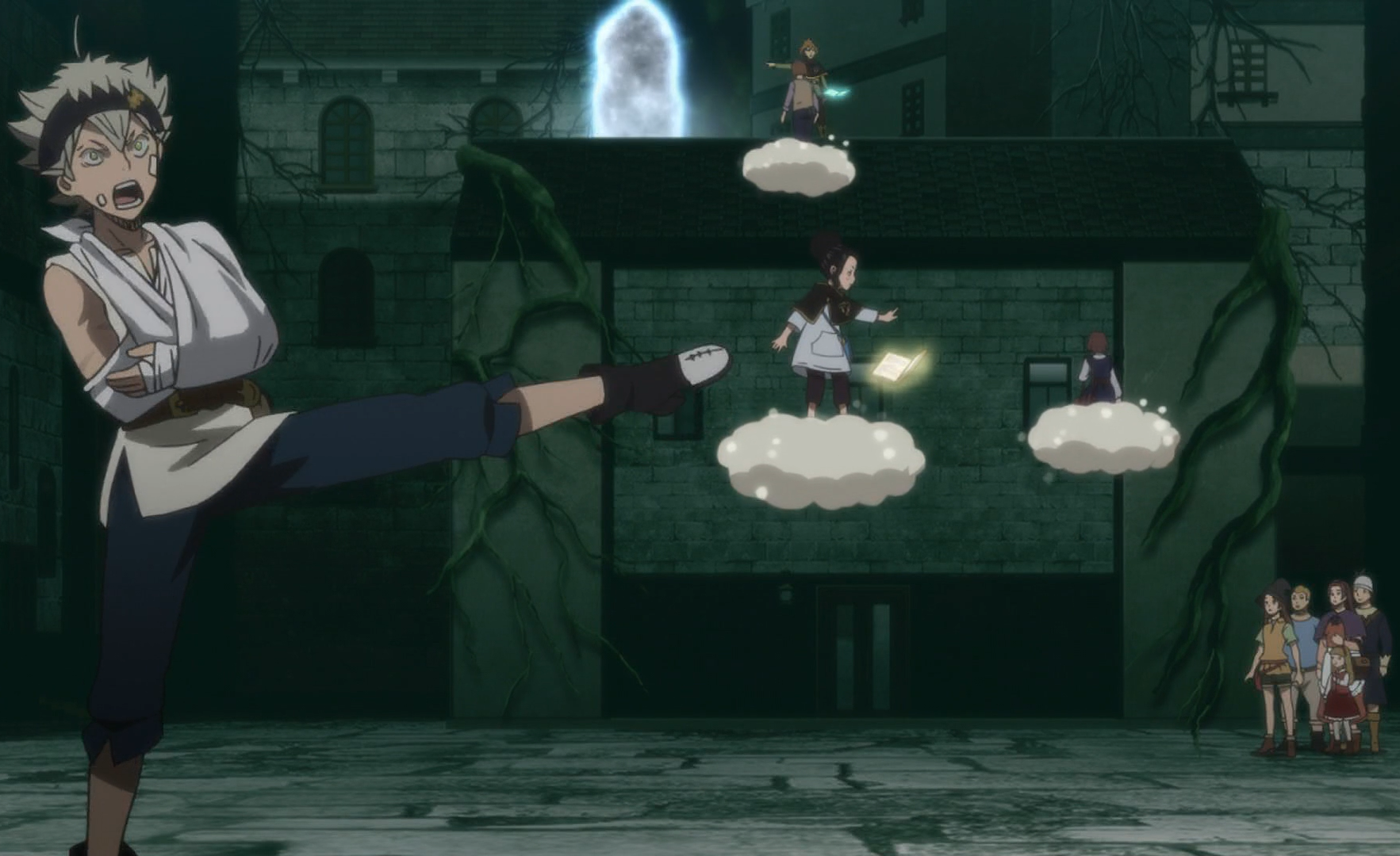 The Black Bulls arrive just as the rest of the magic knight squads are on the verge of being overwhelmed against Lucius's forces.[145]