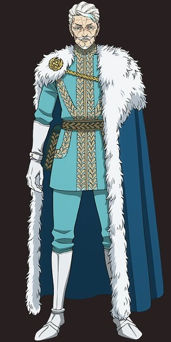 Edward is an elder man with white hair, and a sharp looking thick mustache and beard. He wears a light blue outfit with white long gloves and long boots, and a large cape with white fur lining that covered the left side of his body and the medal of the Wizard King.