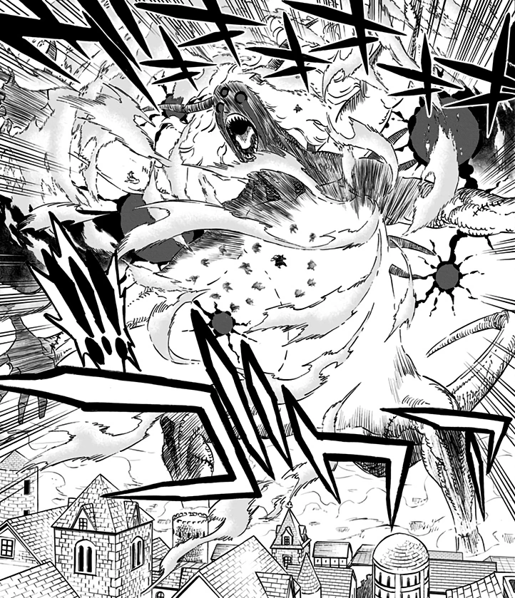 Three days later, when one of the Spade Kingdom's demons attacks the Clover Kingdom, Kaiser and group of Purple Orcas try to hold the demon back together, but it is too powerful and disperses all of their spells.[12] Shortly after, Asta and Liebe arrive and defeat the demon with their Unite form, saving the kingdom.[13]