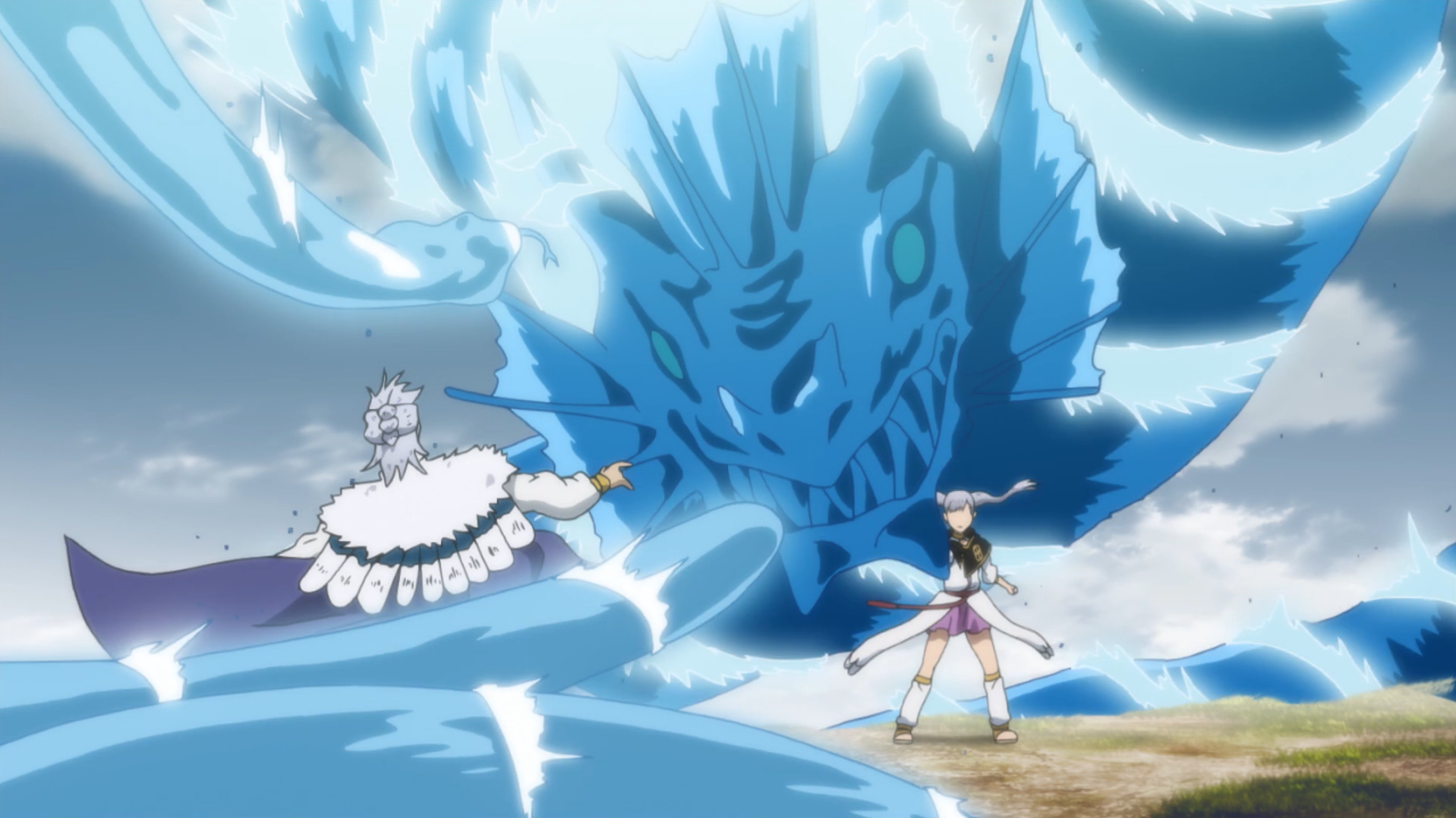 His anger quickly turns to terror when faced with Noelle's water dragon. He challenges her to attack, not believing that her spell could hurt him, so she releases her Sea Dragon's Roar, which destroys his spell and crystal and heavily injures him. Team O loses the match.[37] As a two mages heal him, Solid keeps muttering, "Impossible."[38]