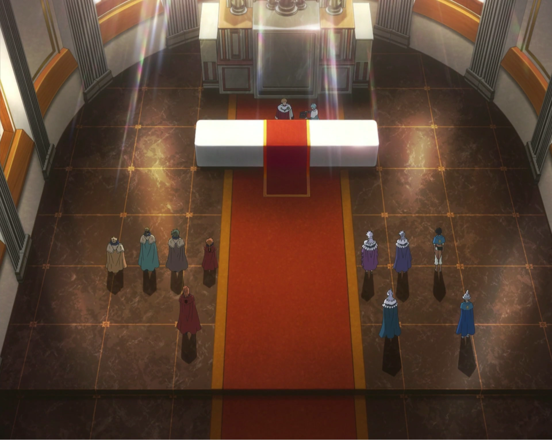 During the ceremony, Solid is promoted to a 3rd class Intermediate Magic Knight after collecting 6 stars from completing missions that were assigned to him.[11][2] At the end of the ceremony, Solid and the other Knights are invited by Julius for a celebratory banquet that he had prepared.[12] After Julius leaves to attend another matter, several Knights begin to scrutinize the unwanted guests that Julius had brought. Solid joins the commotion by greeting his younger sister, Noelle Silva, who is one of the unwanted guests.[5]
