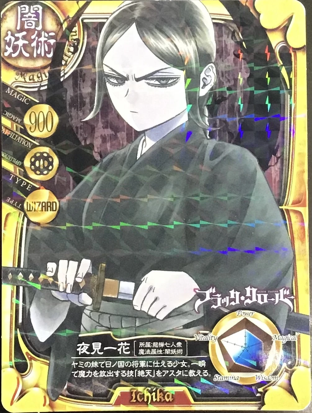 Yami's younger sister and the servant of the Hino Country's Shogun, she teaches Asta the technique "Zetten", which releases her magic power in an instant.